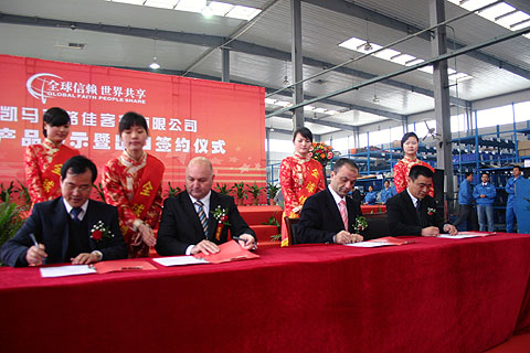 8日,江西凯马百路佳客车有限公司与约旦莫哈莫得汽车公司以及澳大利亚国际巴士与客车有限公司正式签约,与此同时,国内第一辆自主研发的豪华房车在南昌下线,这也预示着千辆南昌客车承载着中国客车的梦想全面挺进国际市场。