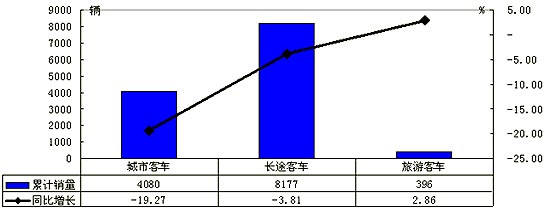 2005年1-8月不同种类中客整车累计销量及销量同比增长率