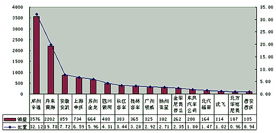 2005年1-8月份大型客车部分企业销售情况