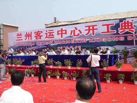 7月12日上午10时48分,备受社会各界关注的甘肃省最大的公路客运枢纽——兰州客运中心,经过十年的立项、规划、选址、论证、奠基过程,终于在兰州火车站北侧原兰州量具刃具厂厂址破土动工。甘肃省委常委、兰州市委书记、市人大常委会主任陈宝生,副省长杨志明,省长助理、兰州市委副书记、市长张津梁等省市有关领导参加了开工仪式并为工程开工剪彩。据悉,兰州客运中心总投资额约1.86亿元,计划于2008年建成投入使用。建成后将是西北地区最重要和最具规模的公路交通运输枢纽。