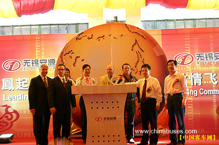 无锡市政府、商检、海关领导,江西省国资委、江西省煤炭集团、安源实业股份有限公司、各地区银行界的领导,澳大利亚国际巴士与客车公司、美国BCI公司及马来西亚、英国、约旦、越南等国家的客户,博信(上海)电池有限公司、广州玉柴机器股份有限公司、美国卡特彼勒公司、美国大冷王、美国伊顿、德国ZF等合作伙伴以及来自全国二十多个省市交通、旅游、运管及客运团体部门的领导及客户们齐聚一堂,共同见证了这一激动人心的时刻。
