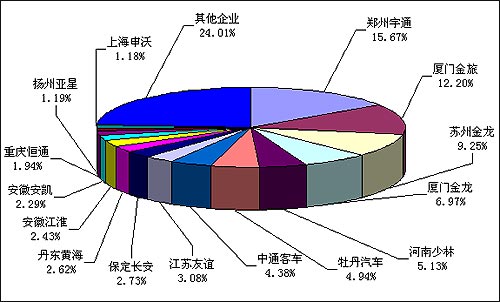二、前十五名客车企业市场占有率
