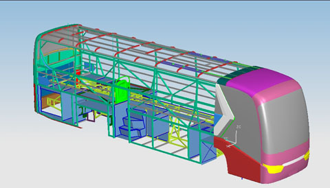 当比例模型经过正式评审,确定了最终方案,整个造型设计告一个段落,是为"设计方向冻结"。接下来的工作是通过电脑软硬件对设计方案进行数字化处理。在这个阶段,大金龙研发部门也展开同步数据去检讨车架的结构,以确保设计提案与车架底盘之间的可行性。