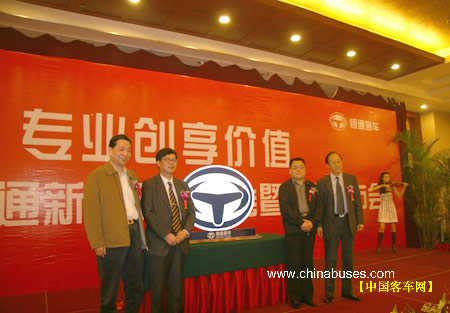 恒通标识揭幕 重庆恒通客车借此次盛会答谢全国经销商和客户的支持,并集中展示了2007年恒通客车的新品,同时还利用此次大会正式启动以"恒通客车"为核心的新一轮品牌战略。重庆恒通客车有限公司总经理邓平以及重庆市交委副主任梁培、建设部科学技术委员会城市车辆专家委员会主任李世豪、重庆市公共交通控股集团董事长杨茂超共同揭幕恒通标示,宣布"恒通客车"品牌工程正式启动,这标志着恒通客车将踏上新的品牌历程,开创一番新的辉煌。