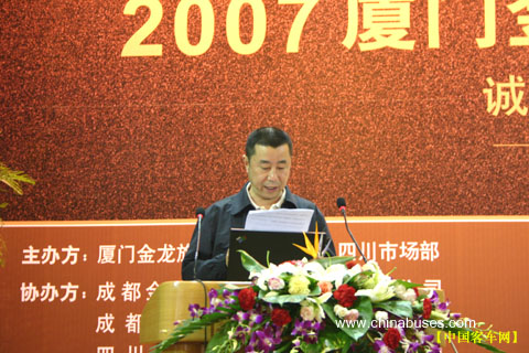独步世界之颠"的2007新品推介会,厦门金旅副总经理万邵春、销售公司副总经理刘俊鹏、川渝大区市场经理杨洋以及来自四川省的众多金旅客车经销商及客户代表共同出席了此次会议。