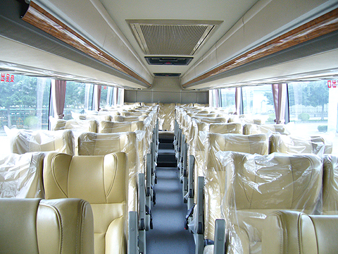 新车型车内装饰是引入五十铃最新设计,航空式行李架与天板形成一体,车厢简洁明快,配以柔和、清新的色调,突显人性化的环境设计。