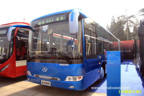Rapid Transit公交快运系统),各家产品各具特色。大金龙集中技术力量,耗时一年研发出XMQ6180G铰接车,在3月13日世界客车博览亚洲展中,以外观、性能、个性化特点等绝对优势在众多BRT中脱颖而出。 据称,XMQ6180G铰接车是大金龙进军BRT市场的一大力作。该车全长18米,最小转弯直径为24米,灵活、便捷,超低地板离地仅有380毫米。另外,该车还特别配置ECAS系统,可实现车身上、下、倾斜动作,此种设计实现了无障碍上车,乘客可以迅速而轻松的上下车。