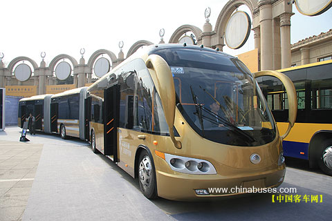 全球共享"有更直观的理解。 作为今年宇通的拳头车型之一,ZK6127H系列在本次车展上首次以"双剑出击"的形式共同亮相:旅游版和客运版分别位列宇通主展台两侧,当大红的幕缎从两款新车上徐徐揭开后,漂亮的宇通车模从旅游版和客运版新车上款款走出,向在场观众和媒体记者生动地演绎了宇通新品的独特魅力。据了解,这是宇通在2007年针对旅游市场和客运市场专门研制的新车型,在产品设计理念上充分考虑了不同细分市场的不同需求。两款不同版本的新车同时亮相,这在宇通的新车发布历史中也相当罕见。 25米超长BRT产品ZK6251G则是宇通在北京车展上使出的另一杀手锏。整车采用流线型子弹头式造型设计,不但美观时尚,在速度和动力上也有卓越表现,目前国内尚没有其他企业有同类产品。最引人注目的是,ZK6251G车长为25米,采用双绞接系统,而之前宇通今年3月在上海客车展时推出的子弹头造型快速公交车则只有18米长,在容量上ZK6251G无疑有着明显改进,可以在同一时间以更快的速度运送更多的乘客,进而有效地解决北京、上海等大都市交通拥挤难题。 舞台表演:宇通最风情
