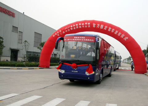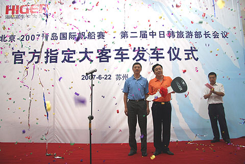6月22日, "好运北京--2007青岛国际帆船赛、第二届中日韩旅游部长会议官方指定大客车交车仪式"在苏州金龙举行,30辆海格客车即将开赴青岛,承担起服务两大国际性盛事的重要责任。这是继去年代表中国客车走出国门,成功服务盛况空前的第十五届多哈亚运会后,海格客车再次亮相大型国际性赛事和重要会议。人们再一次领略到海格客车品牌影响力。