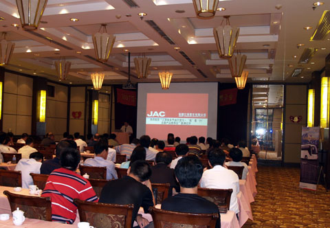 江淮客车精心准备的丰富内容,把与会代表的热情推向了顶点。如果只是一个会议营销,此次推介会已经收到了预期的成效,但也仅仅是一个营销的活动;而作为一个创新,江淮客车在卖产品的同时也推销了自己的一个观点。