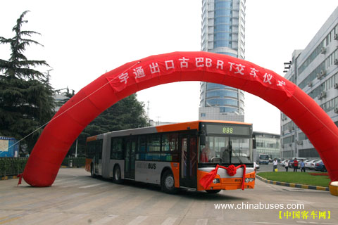 9月24日上午,宇通集团隆重举行了"城市公交 世界共享·宇通出口古巴BRT客车交车仪式",古巴驻华大使卡洛斯先生从宇通集团总裁汤玉祥手中接过象征性的车钥匙,随后200辆18米BRT公交车缓缓驶出宇通工业园,赴连云港待发。据记者了解,这也是国内BRT客车首次批量出口海外,为我国高档客车冲击海外市场奠定了基础。