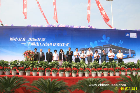 宇通集团总裁汤玉祥、古巴驻华大使馆大使克洛斯先生、河南省人大、省外事侨务办、郑州市副市长、省市商务厅、海关等领导,以及中国机电产品进出口商会、中国汽车工业协会、美国能源基金会等代表出席了仪式,共同见证2007年宇通签订的中国客车出口最大批量订单,首批顺利交付古巴。