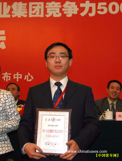日前,从国家统计局"第七届中国大企业集团暨第二届企业竞争力500强高峰论坛第四届中国大企业集团信息发布会"所发布的最新信息统计获悉,郑州宇通企业集团毫无悬念地再次荣列"2007年度中国最大500家企业集团",并继续成为国内客车行业排头兵,保持着5年来入选该榜单的纪录。