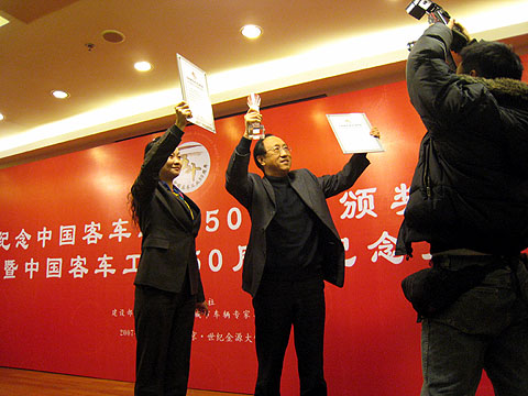恒通客车总经理邓平发表获奖感言   2007年12月12日上午,在由中国汽车报社和建设部科学技术委员会城市车辆专家委员会共同主办的“纪念中国客车工业50周年颁奖典礼暨中国客车工业50周年纪念大会”上,重庆恒通客车有限公司荣获“中国客车工业十佳城市客车”、“中国客车工业十佳品牌”两项大奖,总经理邓平荣膺“中国客车工业十大风云人物”。    重庆恒通客车有限公司的前身是重庆市客车总厂,成立于1939年,已有近70年的客车制造历史。作为中国最早建立的客车制造企业之一,见证了中国客车发展路上的辉煌与坎坷,与中国客车工业同进退共甘苦;70年磨砺一剑,孜孜以求的恒通,如今已是一家年产6000台客车的大型客车企业,其中公交客车销量连年位居行业前茅,天然气客车市场保有量已超过2万多辆,成为名符其实的中国最大的公交客车制造企业和世界上最著名的天然气专业客车生产商。以“公交运输方案解决专家”的品牌形象逐渐引起业内的关注。