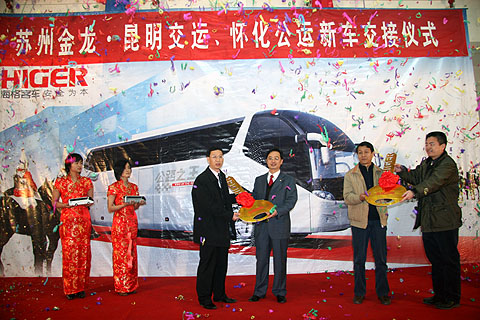 新年伊始,春运在即,高档豪华客车市场烽烟又起,苏州金龙海格客车2008年迎来开门红,8台斯堪尼亚·海格A90豪华客车开赴湖南、云南——