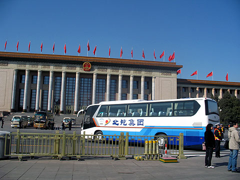 自3月3日以来,14辆来自北汽旅游汽车公司的金龙"龙威"XMQ6129Y客车,为参加两会的福建、山东、江西等多个代表团提供全程交通运输服务,这款寄托着大金龙人汗水与创造力的新型客车,不仅接受着代表们的检验,同时也在接受着同行竞争者的检验。