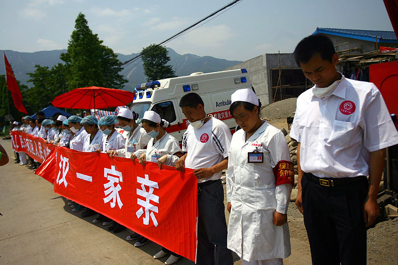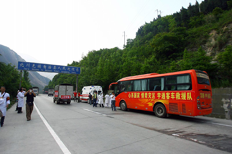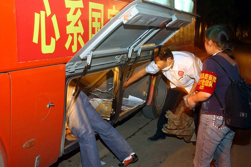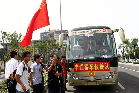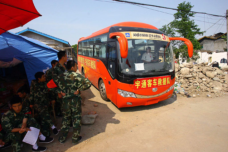 此时,救援队中的司机师傅等人已经近10个小时没有吃一口饭,更没有片刻的休息。大灾面前任务就是命令,更是责任和使命,我们立即又驾车前往德阳。看到服务的医疗队员连上车的力气就没有了,同样疲惫不堪的宇通救援队员又一个个将队员们扶上车,把他们安全接送到成都。完成任务后,已经是18日凌晨零点35分了,大家简单吃了一点东西倒头便睡,谁知刚躺下不到半小时,成都市部分城区再次发生余震,我们又不得不疏散到楼下。
