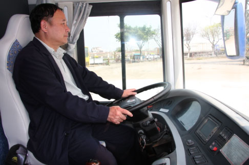 比赛终于结束了,周景华师傅不负众望地以决赛百公里19.7升/百公里,总成绩19.91升/百公里的成绩勇夺"节油精英赛"冠军!周师傅对ZK6127H"神行剑"能跑出百公里20升以下的成绩非常欣喜,同时也有一些遗憾。周师傅表示,今天他一直在严格按照昨天徐工程师讲解的方法驾驶,可惜有一个下坡时判断错误,多踩了一脚油门,要不成绩肯定还能更低。当问到他对比赛用车神行剑的感受时,周师傅掩饰不住自己的喜爱一直夸奖:外观豪华大气,动力很强,操纵起来很舒适,最关键的是非常节油,如果不开空调的话,肯定百公里还能再省上一升油。当周师傅举起冠军奖杯时,自豪之情溢于言表!