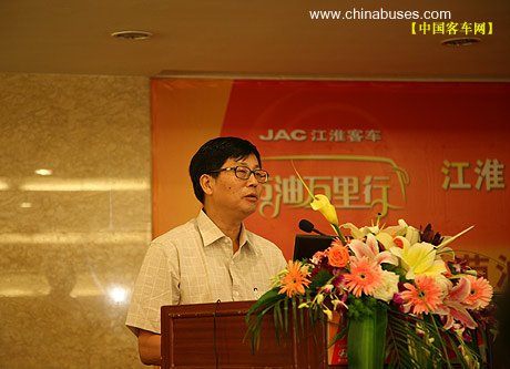 由江淮客车有限公司精心策划的“节油万里行,江淮现代客车的节油大型活动”,今天在安徽拉开了序幕,我首先代表建设科学汽车汽车委员会、城建汽车委员会,热烈祝贺江淮客车公司的新举措,为中国客车产品能塑造新的提高,预祝江淮客车举办万里行活动圆满成功。    节油与环保,是建设自愿性环境友好型社会的重要基础,也是十一五汽车工业重要战略,江淮客车举办节油万里行活动有深远的社会意义,我仅有两句话,第一句话:时代的转化,科目的需求。时代的转换,就是落实能源安全化,客户的需求,就是更省油更经济,加快建设节油性社会,是党中央国务院作出的重大战略决策,是全社会的共同任务,我国将十一五计划要求GDP单位能耗比十五期末降20%,国家统计局将发布国际GDP单位能耗的降低值,今年为4%。    现代能源短缺已为世界所关注,全国客车企业,以全国公交行业为例,现在已有全国公交车辆30万辆,每天运营6000多万公里,全年消耗油料600多万,城市公交行业就要多支出5000万元。去年油的涨价,公交行业又增加了20万元支出。我们把节油工作、作息做好,经济效益社会效益是十分的重大。江淮节油技术具有三大优势,一是江淮底盘的可靠性和经济性;二是引进韩国现代术,通过引进消化吸收这场性,不但性能先进,而且节油;三是江淮人在董事长的领导下,自主创新用于跨越取得了辉煌的一年,江淮客车已拘审与全国客车行业的前面,江淮客车的全国性活动,为全国同行用户专家所称赞。在去年第二届全国客车大赛上,江淮客车荣获“中国客车金奖”、“中国客车最佳节油奖”等称号,此次江淮客车举办节油万里行的大型活动,是体现江淮客车高度的社会责任感,将节油提高,提升到公众的跟前,这不仅涉及到客车制造业本身技术的追求,还需要得到全行业的共同关注和共同的努力,中国行业专家有关部门的权威人士,客运企业制造企业的技术人员和自身认识的共同写照,包括优秀的技术管理人员和优秀的驾驶人员,共同的合作,把节油活动搞好,将节油技术向公众推广。    富裕社会企业和个人树立节能意识,共创资源性社会,让我们共同为江淮客车举行节油万里行明确开道。建设科技委成立了建设委员会,以成立行业和有关大城市的公交总公司,共同研制节能环保型江淮客车,江淮客车是节能环保型的主要厂家,我们要求节能环保型客车是一个全新的车型,一是节油要求在2007年百公里油耗下降5个点,2008年下降10个点