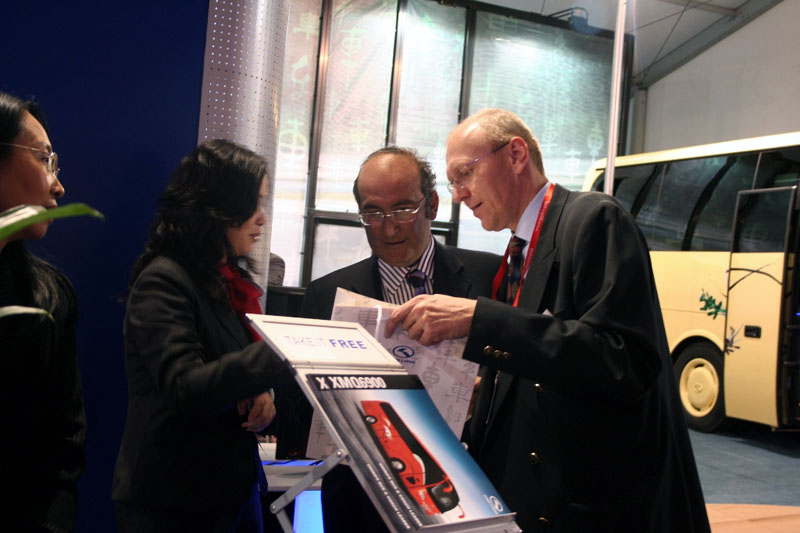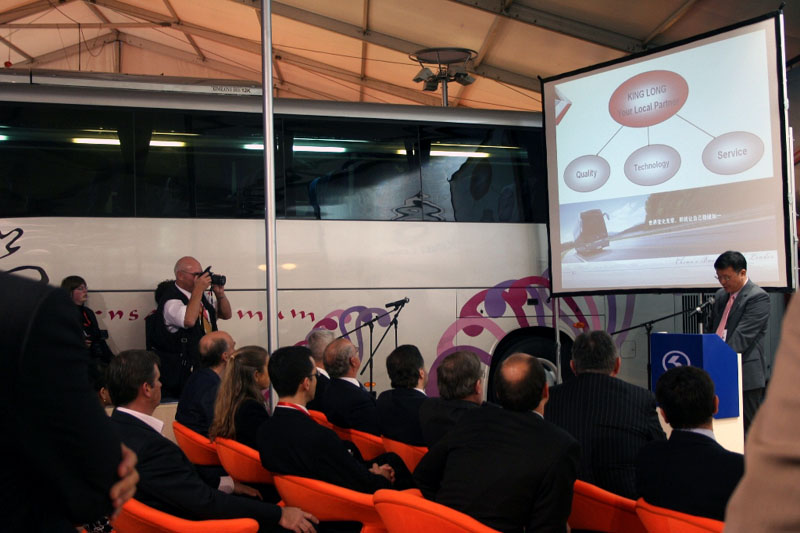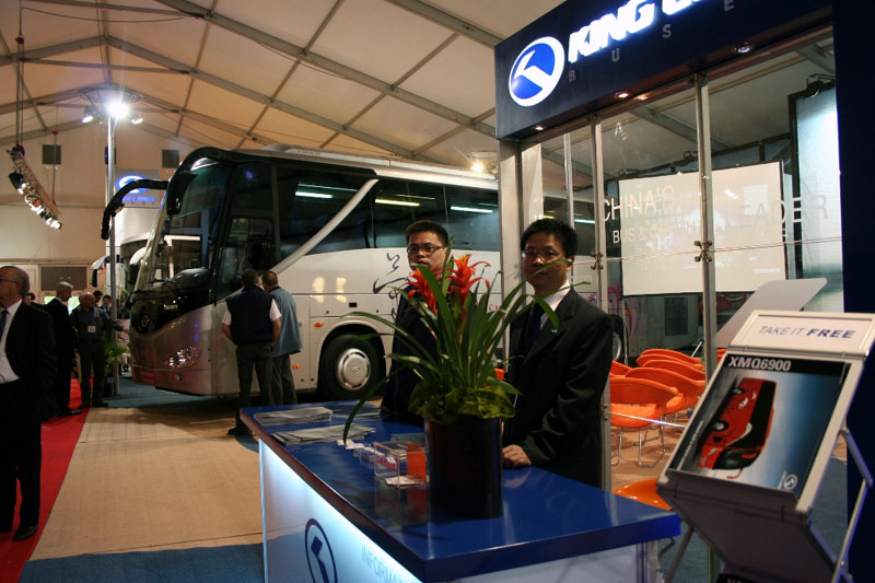大金龙展车之XMQ6127和XMQ6121G | 大金龙展台汇聚五洲人气 | 江世煌总经理给北京客人介绍参展情况 | 欧洲观众仔细询问展车信息 | 张万益总助解读“中国客车领导品牌” | 中国元素车身图案吸引欧洲观众的注意 |