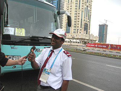 中国巴士数量多自然值得称道,但客车品质更重要,它决定了中国客车在卡塔尔的口碑。为了能更客观地了解服务亚运会的海格大巴的有关情况,我们决定走上街头,对停靠路边的大巴司机进行面对面交流,了解他们驾驶海格客车后的感受或意见。