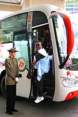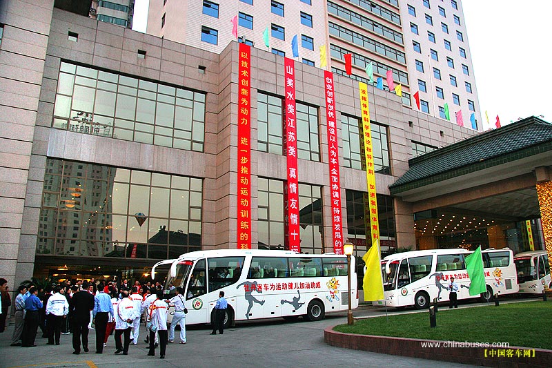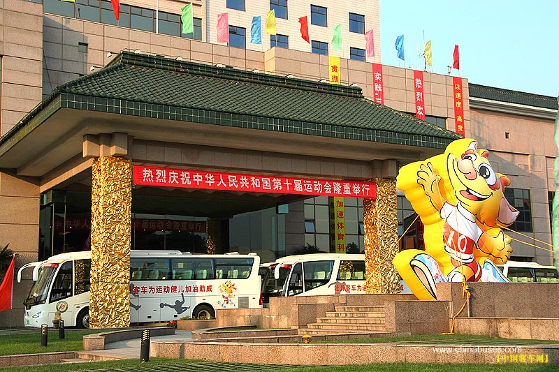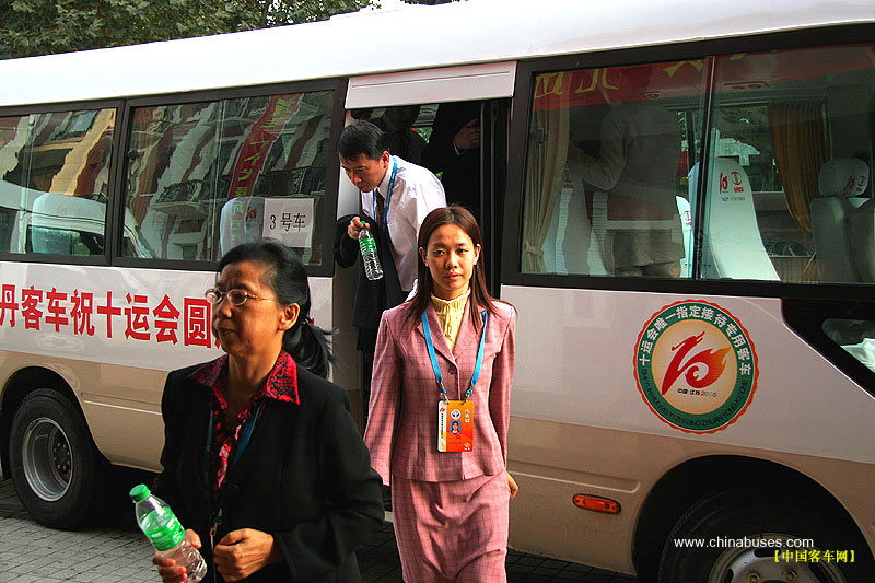 自牡丹百辆十运会服务客车于10月8日抵宁后,近几日来穿梭于南京的各主要交通要道,活跃于机场、火车站、各大宾馆与各体育赛场之间,相继出车500多次,承担了国家体育总局领导、中国优秀群众体育代表、中国优秀运动员与教练员代表、澳门代表团及其它省市代表与国外友好代表团计千人的接待工作。牡丹客车在运行中的可靠性与出车服务的高质量已得到了十运会组委会的充分肯定,"豪华、整洁、可靠、准时"是十运会车辆管理处对牡丹客车近几天来服务的评价,要求牡丹客车除外事接待的几辆"都市阳光"外,全线上阵为十运会开幕式服务。