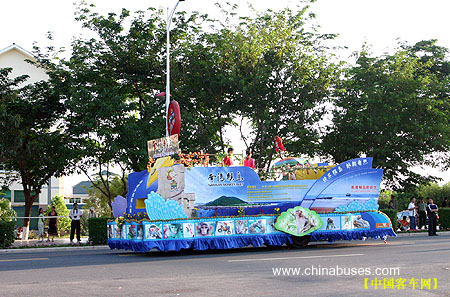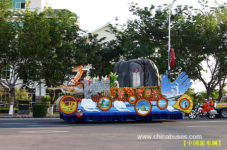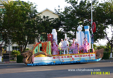 11月12日是电影节落幕之日,恰逢第六届中国海南欢乐节开幕之时。欢乐节组委会特地将这一天命名为"激情狂欢,百年星光"。当天下午,电影明星,世界小姐,各界嘉宾将乘坐宇通客车到达活动指定地点,然后换成花车与三亚市民进行欢乐巡游,同时还将有摩托艇、龙舟巡航,空中动力伞和直升飞机表演等,实现陆、水、空的立体效果。        巡游开始之前,慕名专程而来的国内外游客和三亚市民约10万人驻足围观,用艳羡的目光和一浪高过一浪的欢呼声欢迎世界小姐。与此同时,得益于世界小姐的豪华宇通客车也蠃得了观众的阵阵掌声。        下午2点许,巡游从第54届世界小姐总决赛的会场--美丽之冠会展中心的"欢乐之门"开始,在花车的引领下,30名头戴花环的世界小姐代表手持鲜花,兴致盎然地登上30辆巡游车,开始了"全城欢乐大巡游"的征途。        事实上,宇通客车是本次被世界小姐总决赛组委会指定唯一服务提供用车。改成“据世界小姐组委会主席莫莉夫人认为:宇通客车高档、时尚的外观以及缤纷的色彩与世界小姐的气质相当吻合,与欢迎仪式的热烈气氛也相得益彰。