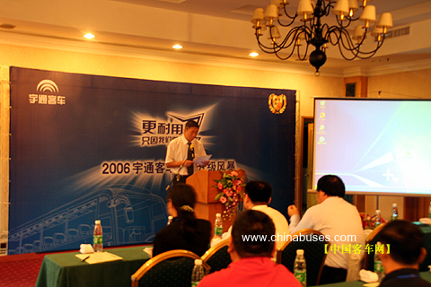 在会场上,不时能看到熟悉的面孔,其中广州长运的余总,是去年"耐用是金"活动广州站"耐用之星"团体奖的获得者,这次有关"耐用升级"的活动他再次来到了会议现场。广州长运购买的是宇通客车的ZK6120HP型高级豪华客车,车辆的运营状况让余总感觉非常满意。对于"耐用"他有着更为深刻的理解,去年"耐用是金"的活动中,他通过自己在日常保养中的心得赢得了专家的一致肯定,在此次会议上,他更希望能够通过宇通技术人员的讲解交流对宇通近期的技术发展情况有所了解。对于宇通在此次会议上介绍的相关车辆高新技术,在随后的试乘试驾活动中,余总表现出了浓厚的兴趣,他亲自登上了宇通的最新高档客车ZK6128H,亲自感受车辆的性能。在车辆的行驶过程中,余总分别在车辆的前端和后部乘坐,感受车辆在行驶过程中的各部分的不同表现,并且与随行的宇通博士后科研工作站的技术工程师进行交流,详细了解车辆的各项性能。