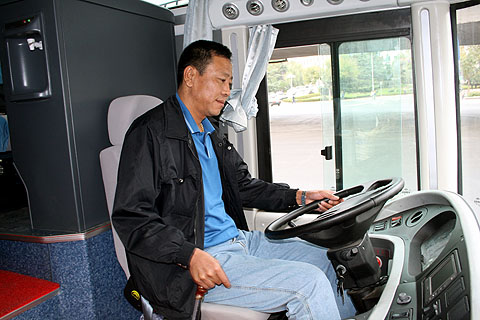 通过交流,记者了解到刘师傅不仅仅当过司机,早些时候还在驾校当过九年教练,可谓是精英中的精英。刘师傅63年生,83年开始开车,已经有二十多年的驾龄,从挂挡起步到转弯换挡就能看出他的基本功很扎实。刘师傅与宇通客车结缘始于99年,开的第一辆客车就是宇通客车,现在开的是宇通ZK6128H,可以说与宇通客车打了9年的交道,对宇通客车已经有了很深的感情。当问及对比赛夺冠有没有信心时,刘师傅只是笑了笑,那是自信的笑容。看来,对于夺冠,他已胸有成竹。