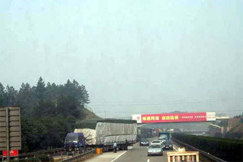 在通往韶关的高速公路上我们看到这里等待加油的车辆排起的长龙长达两三公里。