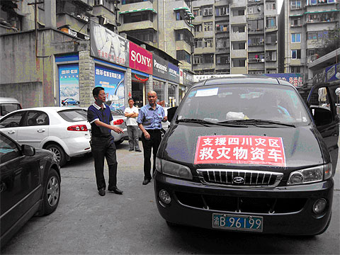 |   “将最需要的物资在最快的时间内送到最靠近震中的地方,为抗震救灾做我们最力所能及的事情,为灾区的同胞们送去我们的温暖。”邓平总经理临行前的嘱咐记刻在我们每一位“恒通服务救援小组”成员的心里。   15日下午4点,我们服务救援队小组车进入了北环高速路收费站,收费站的一位女工作人员当看见我们的车窗上贴有“支援四川灾区救灾物资车   ”的标志时,非常主动、热情地问到:“请把车开到专用停车道吧,我们准备了你们车上需要的方便面和矿泉水,你们一路会很辛苦。”平实的话语让车上所有队员倍感温暖和感动!带队的蒋更新副总经理连忙致谢:“我们车上有自备,把这些水和方便面留给后来的救援车辆吧!”
