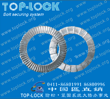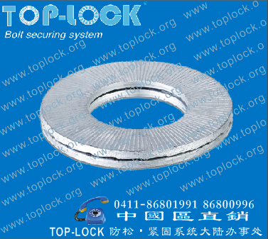 TOP-LOCK 防松垫圈的楔入式独特结构改变了传统依靠摩擦力的防松方式,而采用国际先进的防松技术,利用张力来防止连接件在强振动时引起的松动。