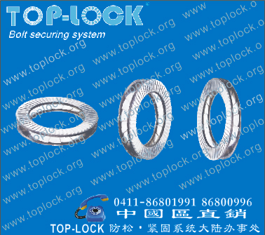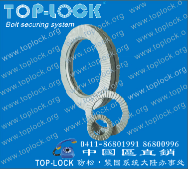 TOP-LOCK 防松垫圈的楔入式独特结构改变了传统依靠摩擦力的防松方式,而采用国际先进的防松技术,利用张力来防止连接件在强振动时引起的松动。