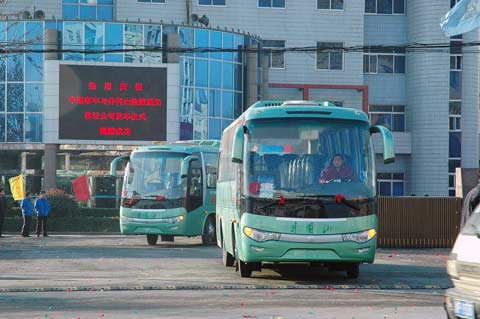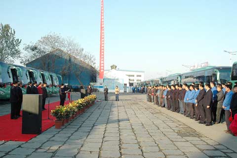 2008年11月25日,中通客车公司迎来了来自革命圣地的客人——井冈山旅游发展股份有限公司的几十名嘉宾,在他们身后,50辆中通旅游客运车缠上了红绫,整装待发。漫天的礼花中井冈山旅游发展股份有限公司的副总曾圣芳从中通客车董事长李海平手中接过了象征车辆交接的金钥匙,一辆辆崭新的客车列队从中通客车公司大门缓缓开出,中通客车与井冈山旅游发展股份有限公司交接车仪式圆满结束。