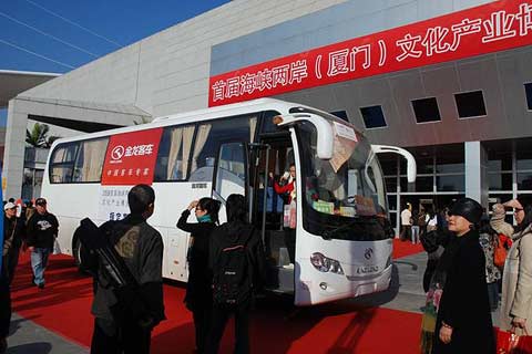 作为两岸文化交流活动最活耀、集中的城市,厦门充分发挥其区域优势,一方面经过前期的精心筹备,对城市环境、交通等各方面进行整改,力图以一个崭新的姿态迎接台湾宾朋;另一方面抓住文博会这一契机,增进海峡两岸文化交流,促进本土文化产业增长。为更好地展示厦门形象,提供高标准的服务,组委会在经过严格的评估和慎重考虑后,决定选用大金龙作为指定客车,为本届文博会嘉宾提供舒适、安全的交通服务。