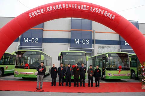 谷书记在仪式中致辞到:福田汽车是中国汽车工业的重要组成部分,是中国商用车第一品牌,福田欧V依托福田汽车强大的研发实力和制造实力及完善的质量保证体系,在短短的几年的时间从零开始,取得了长足的发展。福田欧V客车作为中高端客车的新锐,产品具备了现今全球最先进的全承载车身,采用CRUIS整车制造技术正向开发,使整体性能更匹配。第一期投资2.3亿的欧洲组装技术的技改车间,实现客车整车制造水平与国际同步。“致力人文科技 驱动现代生活”是我们一直努力的方向。此次交付的客车是我公司针对青岛路况,节能环保要求设计生产的,福田欧V感谢青岛胶南交通局和青岛八方交运集团对欧V客车的信任,希望以此为开端,双方加强合作,实现双赢。