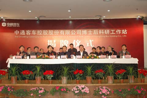 2009年1月6日,中通客车控股股份有限公司博士后科研工作站揭牌仪式在中通宾馆多功能厅正式举行。来自山东省交通厅、人事厅、山东省省交通集团公司、聊城市委市政府、交通局、人事局、科技局、经贸委、聊城交运集团、吉林大学、长安大学、山东理工大学、大众日报、齐鲁晚报、聊城电视台、聊城日报等单位的省市委领导、兄弟企业领导、高校代表和媒体朋友共20余位嘉宾出席了这次揭牌仪式。