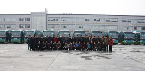2008年12月22日是个难忘的日子,我们从上海申龙公司拿到车钥匙,看着崭新的车辆,心情很舒畅。天下着小雨,有点寒冷,但是大家兴致很高。站在漂亮的申龙广场上,在我们整齐的新车和申龙宏大的厂房背景下,大家合影留念。