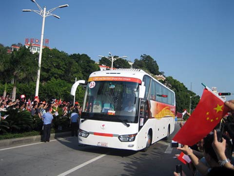 5月9日至13日,十辆专门打造的龙威客车全程护送奥运火炬福建省内传递。随后,金龙客车还荣耀承担了江苏、湖南、黑龙江等多个省市奥运火炬传递重任。