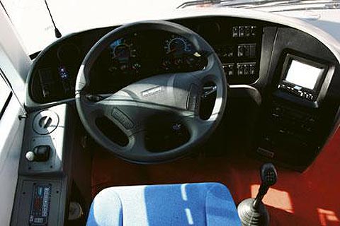试驾车型的驾驶室可以使驾驶员轻松入座。做好驾驶前的准备动作准备起步,发现申沃客车的驾驶视野基本可以用宣传册中提到的“无盲区”来形容,但侧摆门的设计最好采用一体式来取代上下分段式。
