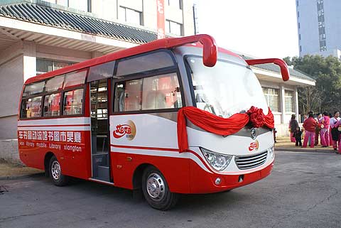 襄樊市图书馆负责人告诉记者:“这辆车是东风旅行车公司专门为流动图书车设计的,外观、特别美、特别好,将为襄樊市民汲取精神营养提供方便”。