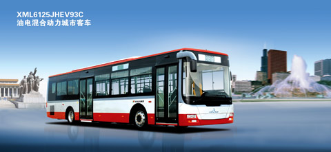 XML6125JHEV93C低地板式油电混合动力城市客车隆重亮相,以“绿色环保”奏响和谐大乐章。