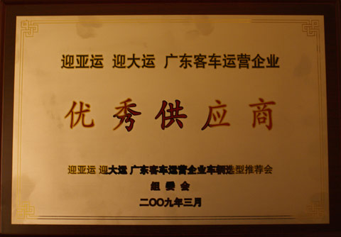 此外,由于在产品质量、售后服务方面的出色表现,中大汽车被“迎亚运、迎大运,广东客车运营企业车辆选型推荐会”组委会授予“优秀供应商”,其产品纳入广东省“迎亚运、迎大运,2009-2010年车辆和零部件采购目录”,并优先考虑采购。
