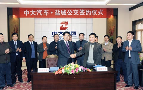 2009年3月9日下午,盐城市公交总公司总经理倪圣江与中大集团总裁徐连宽分别在协议书上签字。盐城市人大常委会副主任陈卫国、市汽车办副主任顾汝华、市建设局副局长苏林、市经贸委副主任杨晓祖、市交通局运输管理处副主任张本进以及盐城公交总公司相关领导出席了签约仪式。