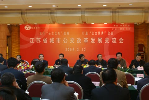2009年3月12日,一年一度的江苏公交年会首次在重庆召开。据了解,此次会议的主题是践行“公交优先”战略,打造“公交优秀”企业。会议上,30家江苏公交公司畅谈了三年多来各自践行“公交优先”战略的感想,而重庆恒通客车公司作为本土公交生产厂商代表及本届年会的承办方,也针对燃气客车在江苏投放的现状及发展作出精彩发言,受到参会人员的高度评价。