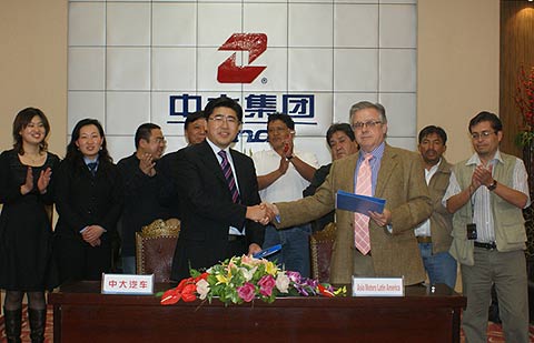 继与阿根廷合作组建SKD客车生产基地,成功打开南美洲市场之后,中大汽车又与委内瑞拉ASIA MOTORS公司达成批量出口中大客车协议。2009年3月16日,中大集团总裁徐连宽与ASIA MOTORS 公司总裁Alfonso Villacis先生在中大集团总部签署合作协议。
