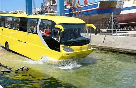 AmphiCoach是一款两栖客车,可以自由行驶在陆地街道和风浪较小的水巷和湖面上面,这款两栖客车现在已经在国外获得生产许可证,并且又名为“Malta-built”的公司进行生产,目前该车已经完成了12个订单,另有50的订单还在建造当中。
