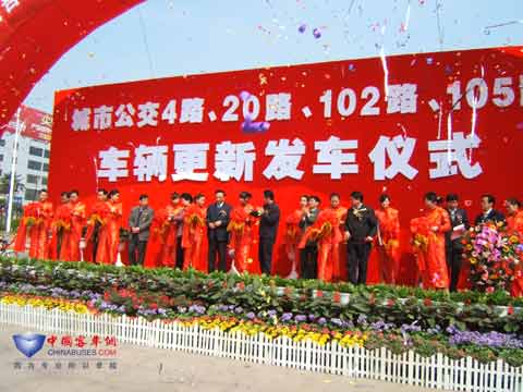 2009年年初,镇江市政公用局和公交总公司在充分征集民意和研究论证的基础上,制定了2009年的车辆更新计划,经过招投标后,确定了国内知名品牌——苏州金龙海格客车为本次上线车辆。新购置的公交车全部选用容量大、能耗低、乘坐舒适的环保节能车型。此次集中上线的51辆公交车全部投放在市区主要干线上运营,其中:4路、20路、102路、105路全线更新共投放41辆,其余10辆分别投放到10路、6路、23路上补充运力。