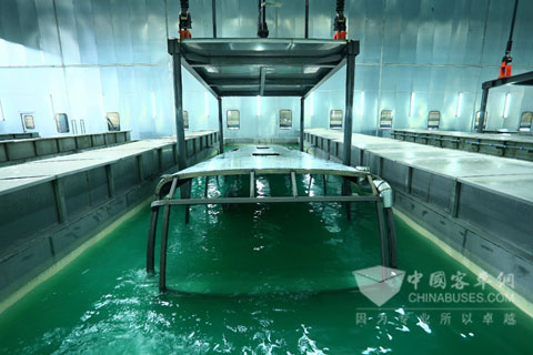据了解,金旅自主创造的全承载车身结构技术,采用了“脊轴式龙骨”结构,与传统结构客车相比,整车弯曲刚度增加20%以上,扭转刚度增加5%以上,整车重量减少10%以上。金旅的大型客车整车车身前处理、全浸式阴极电泳底漆生产线的投产,是国内独一无二的。该生产线不仅需要投入的是大资金和设备,更重要的是需要掌握这项技术。