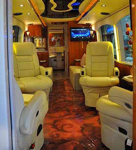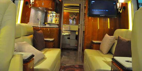 中央电脑控制系统是车内的最大亮点,通过触摸屏即可轻松实现车内外所有包括:水,电,灯光,空调,窗帘,桌子等功能的操作与监控。置身于车内的豪华VIP包厢,听着舒缓的音乐,喝着威士忌,欣赏车外流动的风景,享受这惬意的时刻。充满现代感的满天星顶部设计,可升降的圆桌,纯手工蒙皮沙发,无处不体现出高雅商务气派。无论商务谈判或是举办PARTY,VIP休息区的开阔空间体现您的至尊身份。